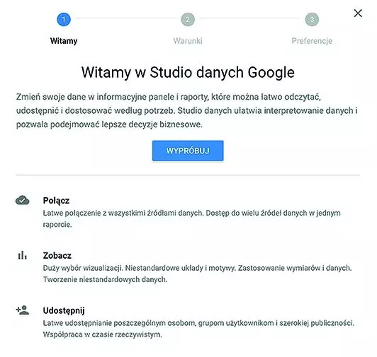 Rys. 2. Okno powitalne w Google Data Studio (Źródło: datastudio.google.com)