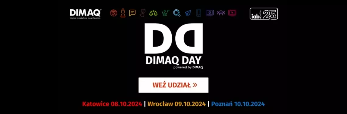 – Udział w konferencji jest szansą na zdobycie najnowszej wiedzy z zakresu marketingu cyfrowego, a także poznanie aktualnych trendów, które obecnie w branży digitalowej ewoluują szybciej niż kiedykolwiek wcześniej. Od początku dbamy o to, aby DIMAQ Day był wydarzeniem na wysokim poziomie merytorycznym, dlatego uczestnicy mogą spodziewać się praktycznej wiedzy, case studies i licznych wskazówek pomocnych w ich codziennej pracy. Nasze dotychczasowe doświadczenie pokazuje, że podczas spotkania dużą rolę odgrywa networking – dla wielu marketerów jest to szansa na pozyskanie nowych, cennych kontaktów, które realnie wpływają na przebieg kariery zawodowej. Z kolei dla pracodawców i przedstawicieli firm to okazja do budowania długoterminowych relacji i wymiany doświadczeń, dzięki którym lepiej zrozumieją skuteczność kampanii, generując większe zyski - mówi Ewa Opach, Dyrektor ds. edukacji i certyfikacji, IAB Polska.